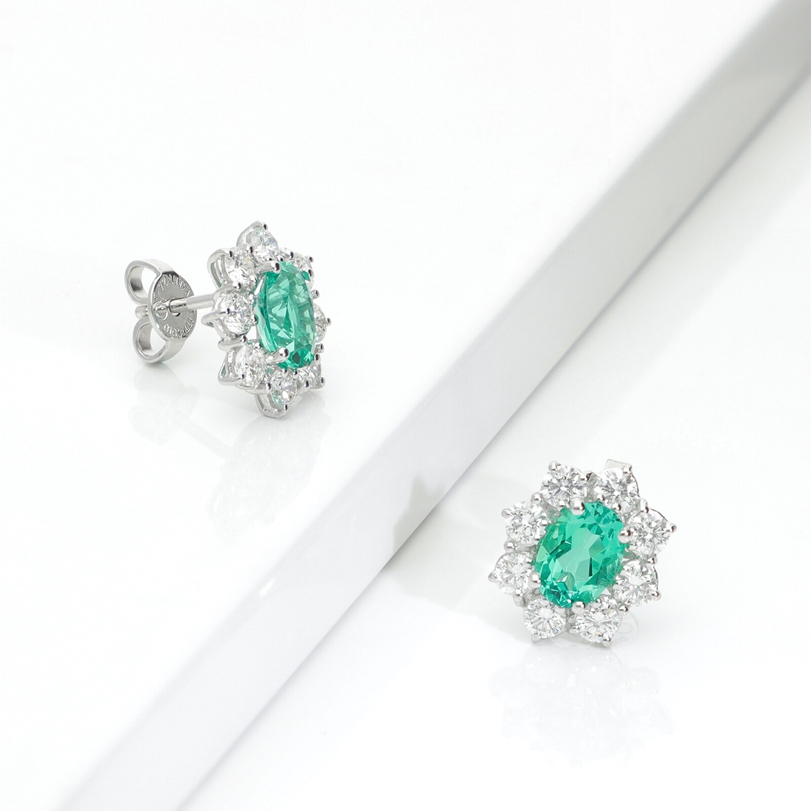 Orecchini in oro bianco 750 con smeraldi e diamanti