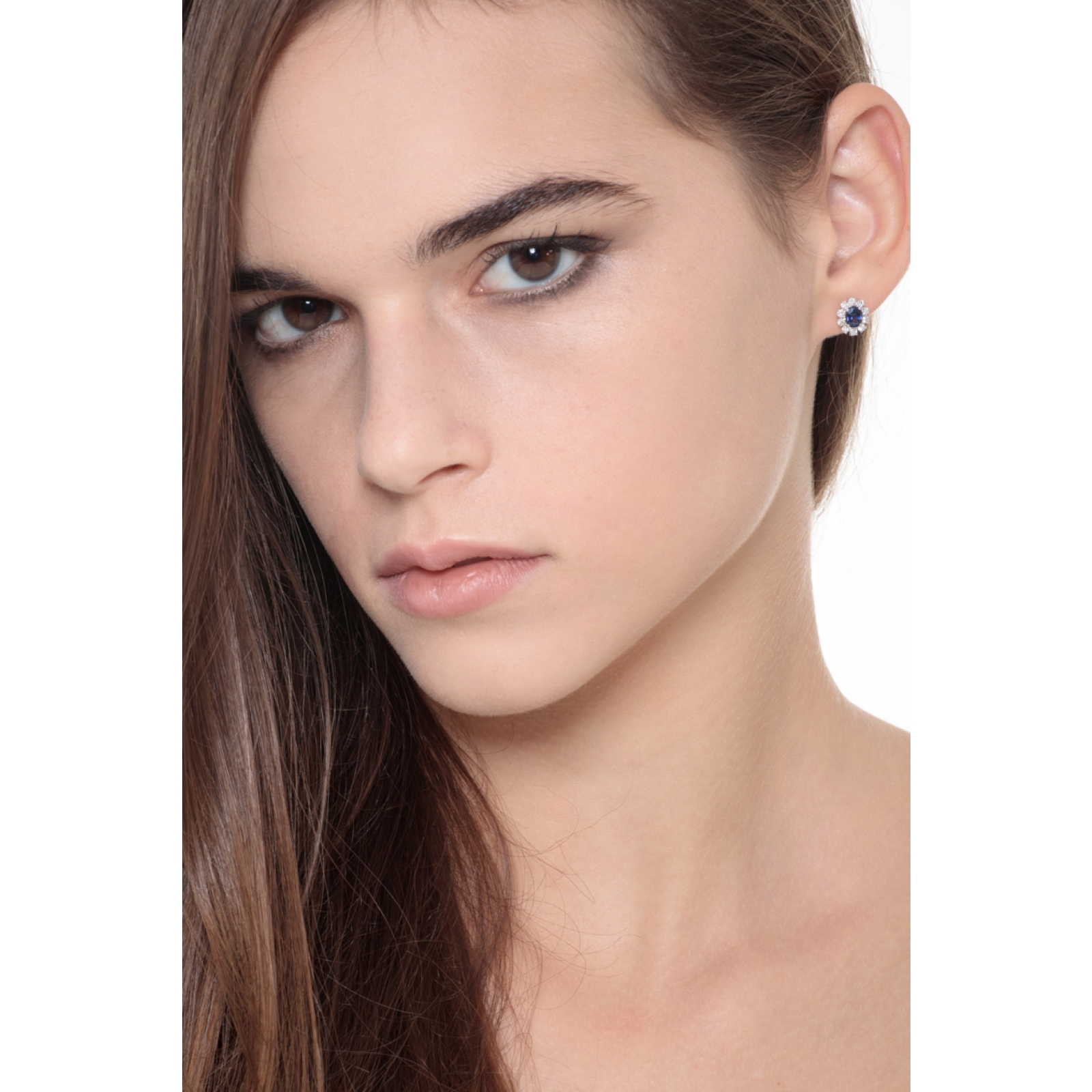 Orecchini in oro bianco 750 con zaffiro blu ovale e diamanti