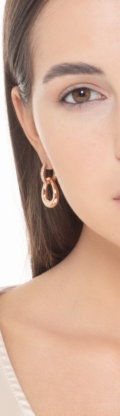 Orecchini a cerchio in oro rosa 18K con diamanti e pendente a goccia