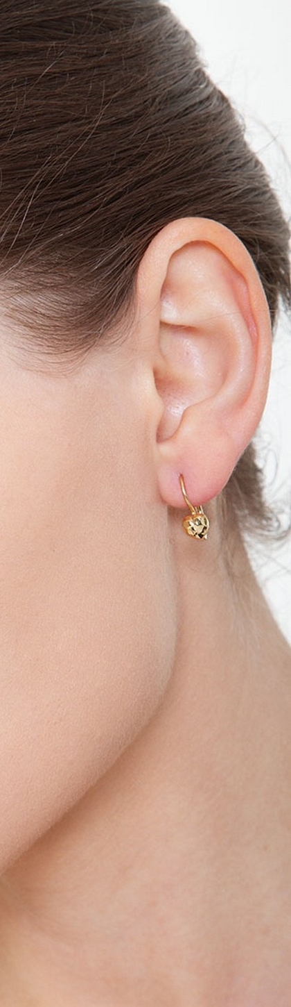 Orecchini a cuore in oro giallo 18k diamantati, 1,6 cm.