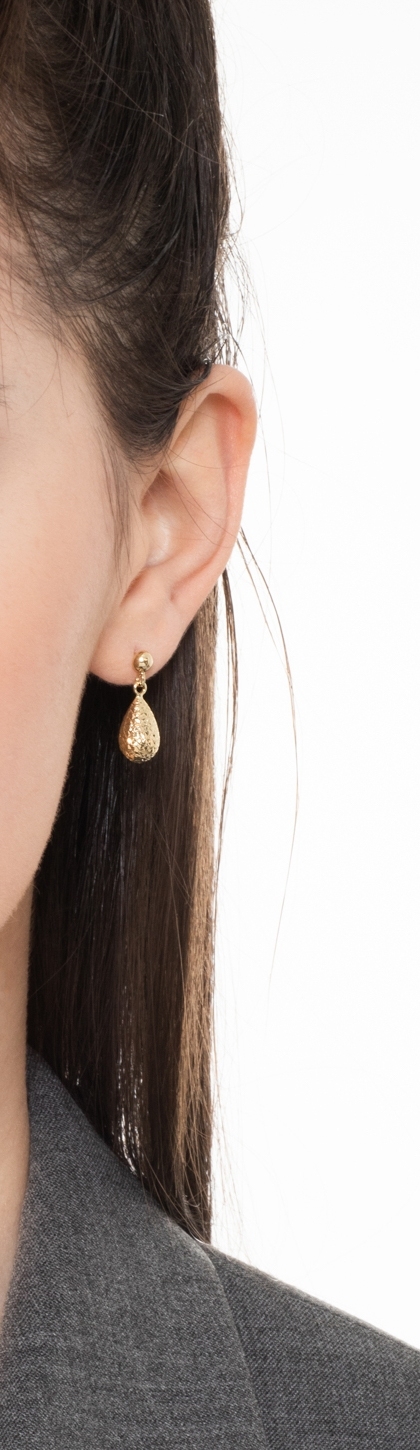 Orecchini a goccia in oro giallo 18k, lavorazione godronata.