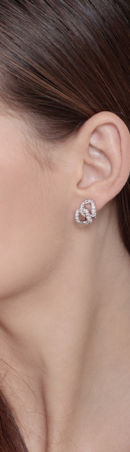 Orecchini a groumette in oro bianco 18K con 2 maglie incastonate di diamanti.