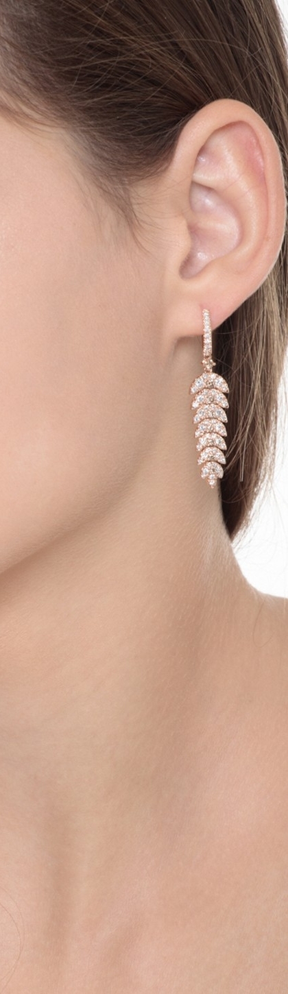 Orecchini con pendenti a piuma in oro rosa 18k con diamanti bianchi e brown