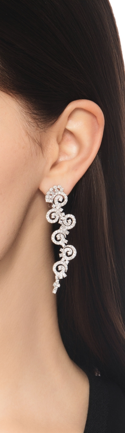 Orecchini con pendenti in oro bianco 18k e diamanti