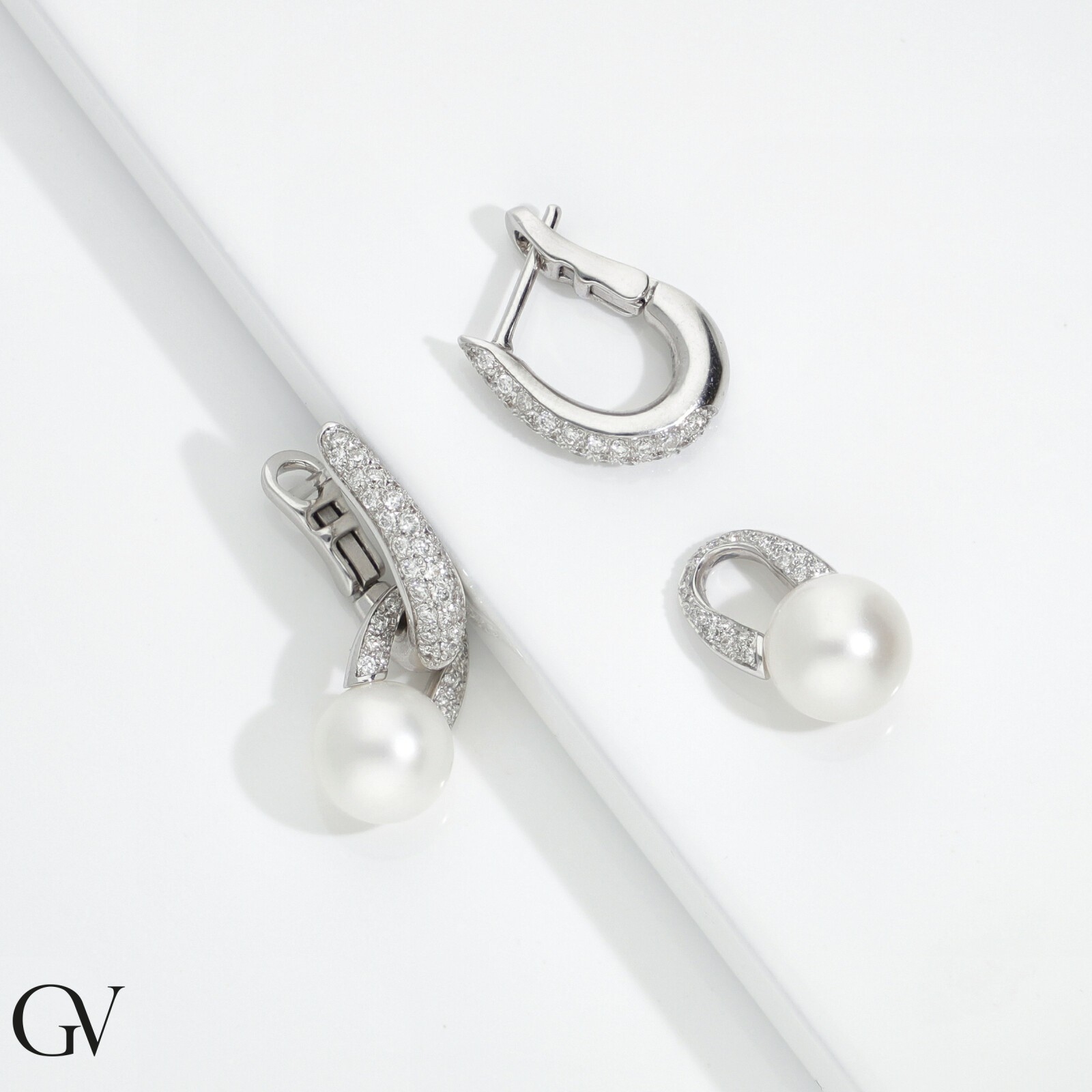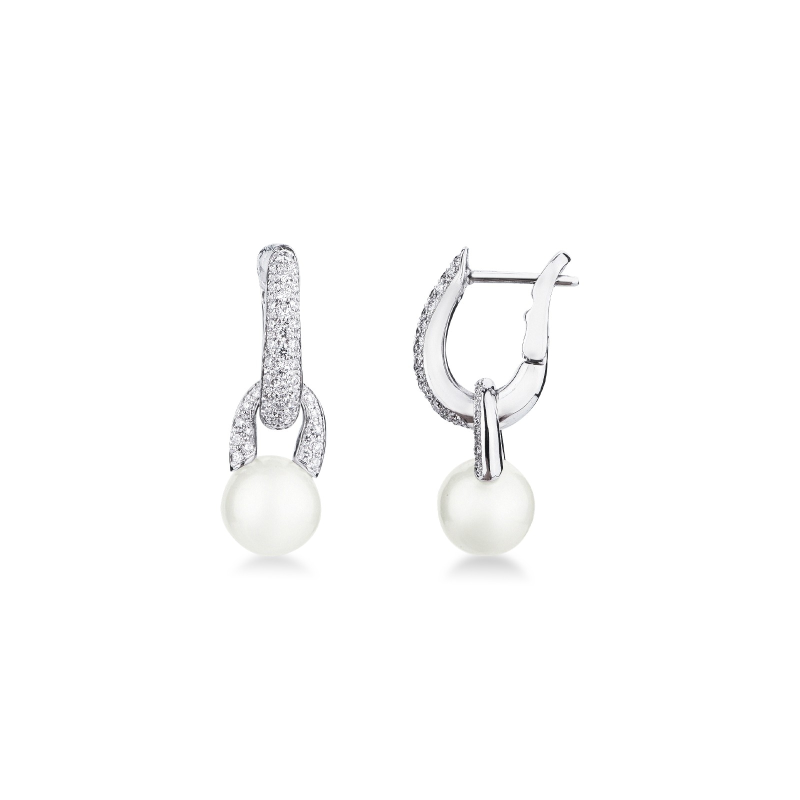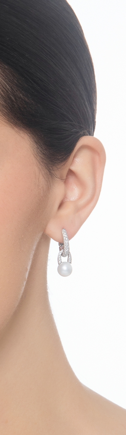 Orecchini di perle pendenti e diamanti in oro bianco 18kt