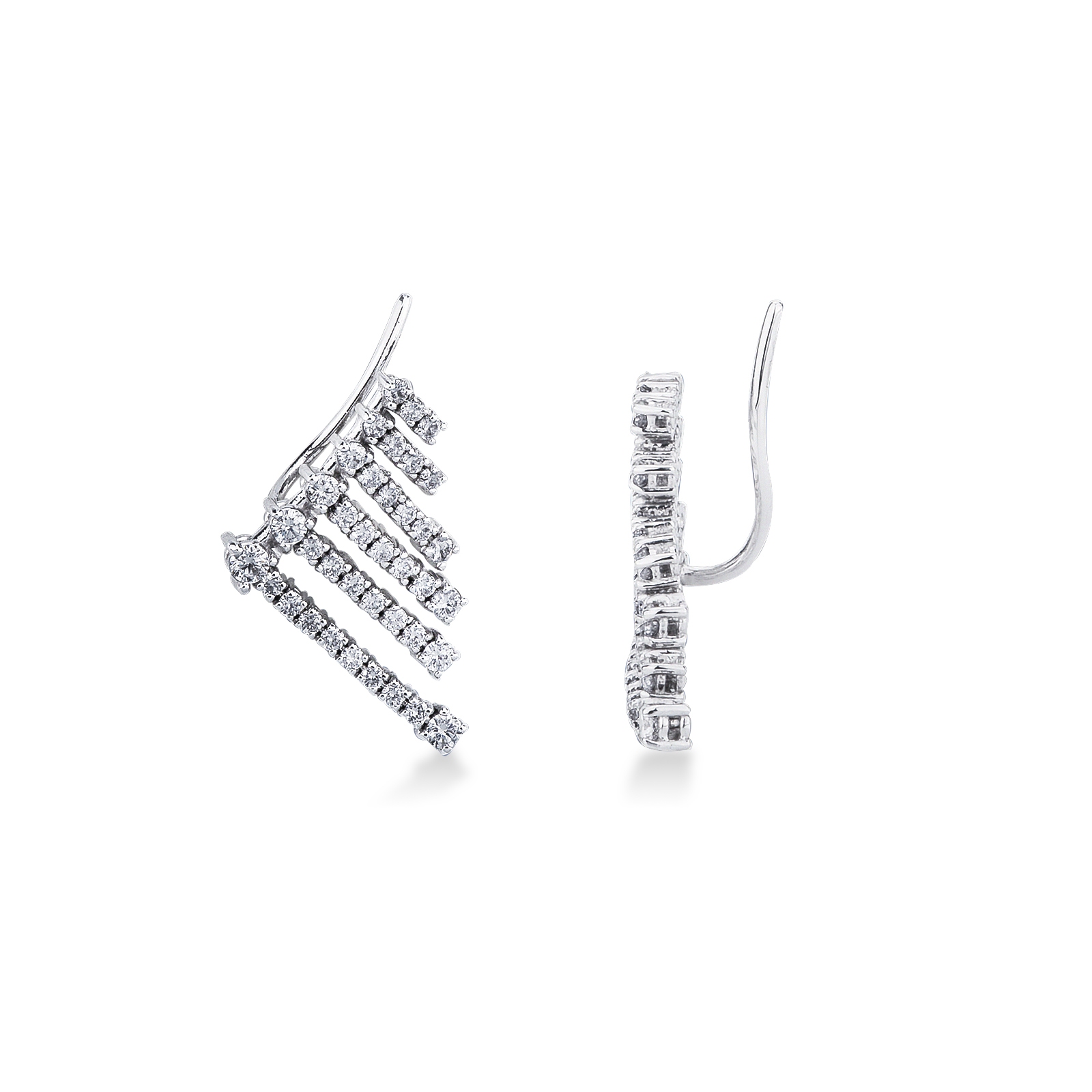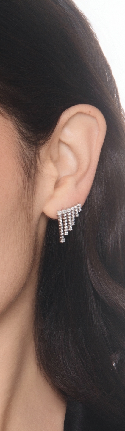 Orecchini fantasia in oro bianco 18k con diamanti a cascata