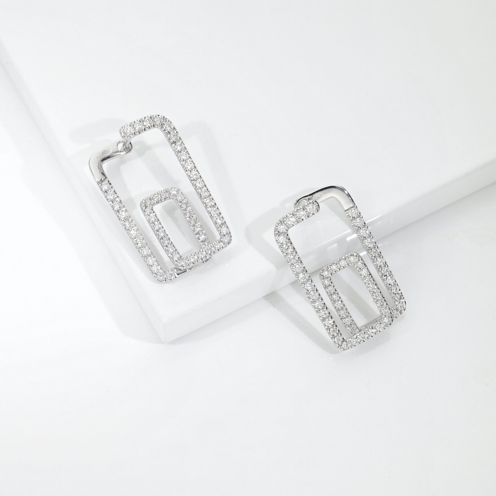 Orecchini geometrici in oro 750 con diamanti