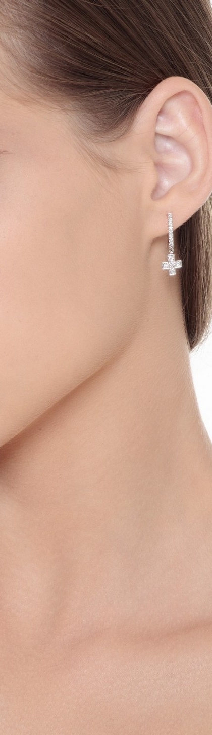 Orecchini in oro bianco 18k con croce in diamanti.