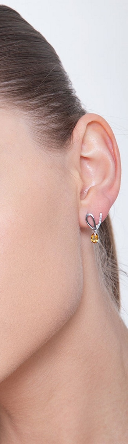 Orecchini in oro bianco 18k con incastonati citrini e diamanti taglio brillante colore G e purezza Vs.