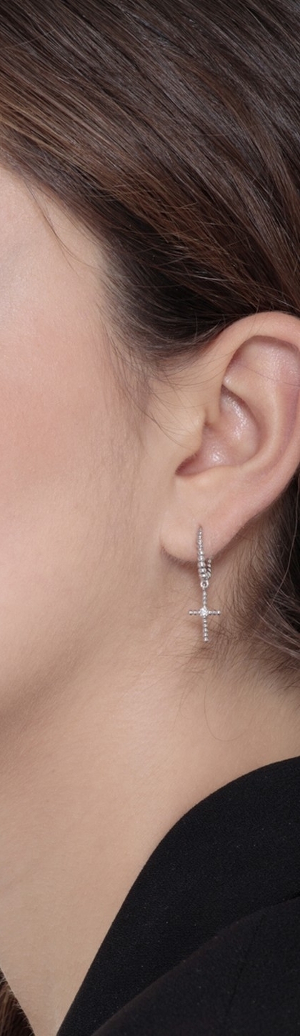 Orecchini in oro bianco 18k con pendenti a croce e diamanti