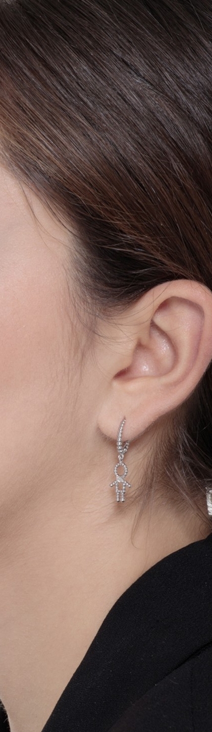 Orecchini in oro bianco 18k con pendenti di bimbo e diamanti