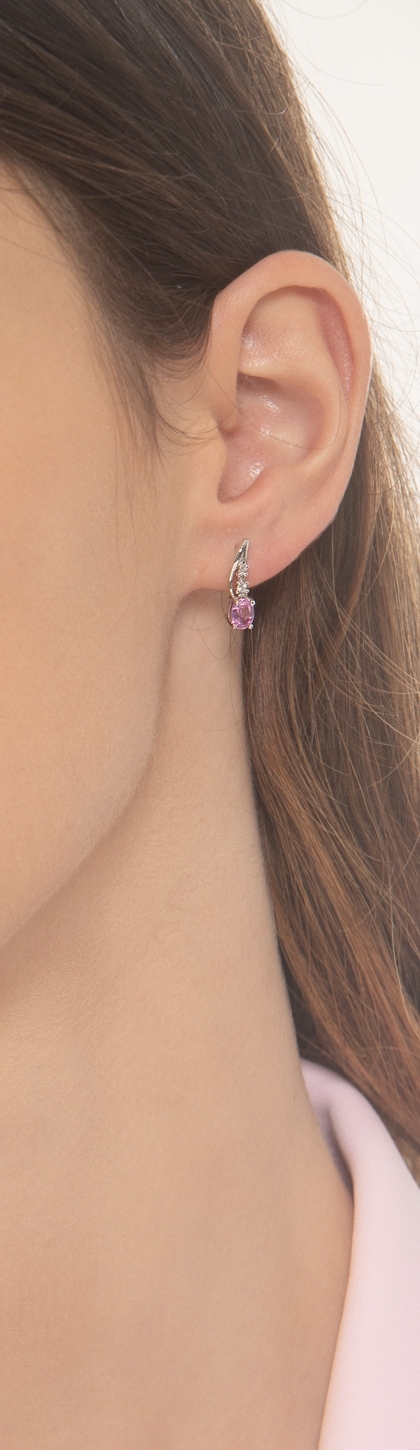 Orecchini in oro bianco 18k con zaffiro rosa e diamanti