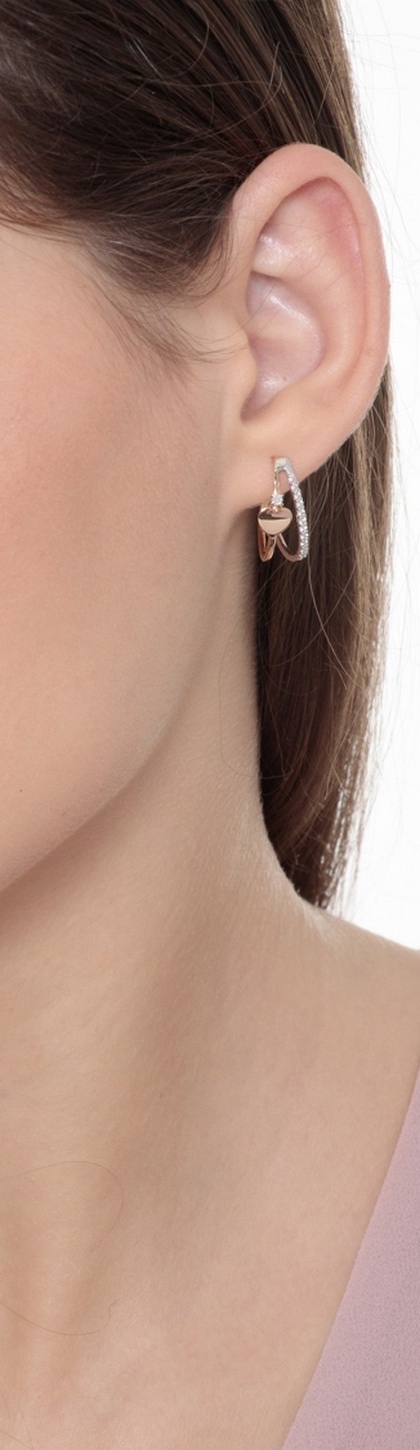 Orecchini in oro bianco e rosa 18k con cuore e diamanti