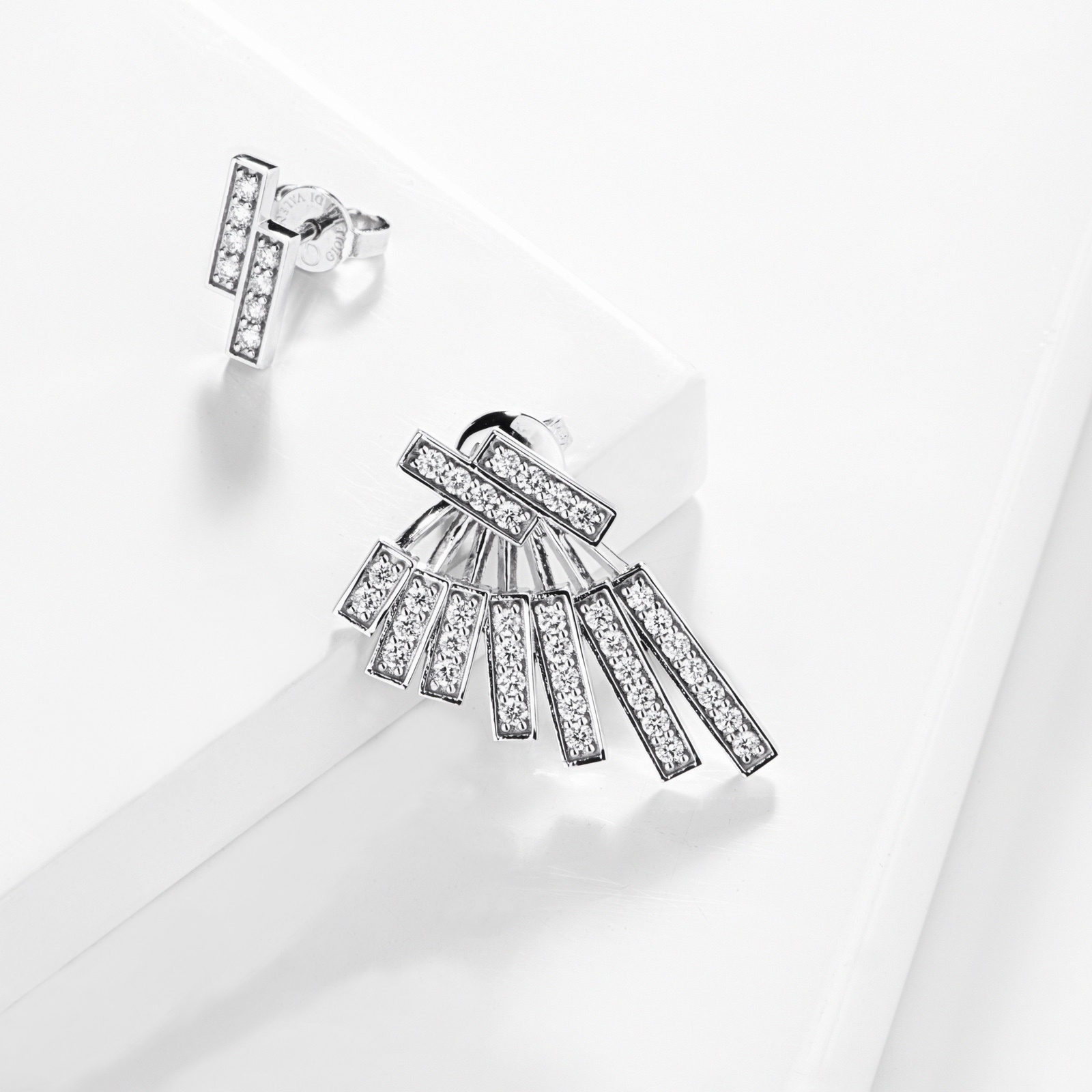 Orecchini moderni asimmetrici in oro bianco 18k con diamanti