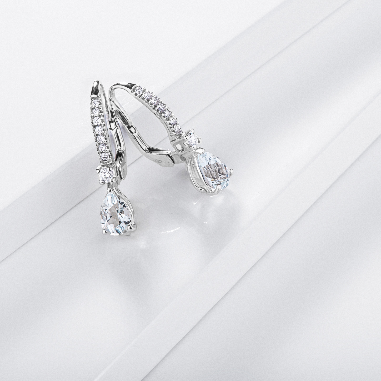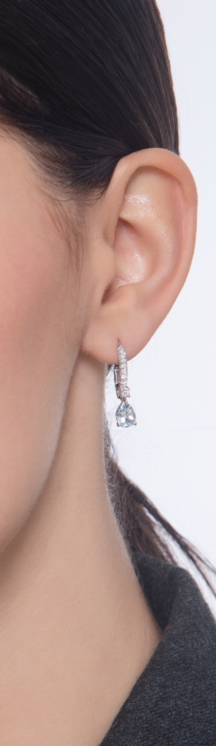 Orecchini monachella in oro bianco 18k con diamanti e acquamarina
