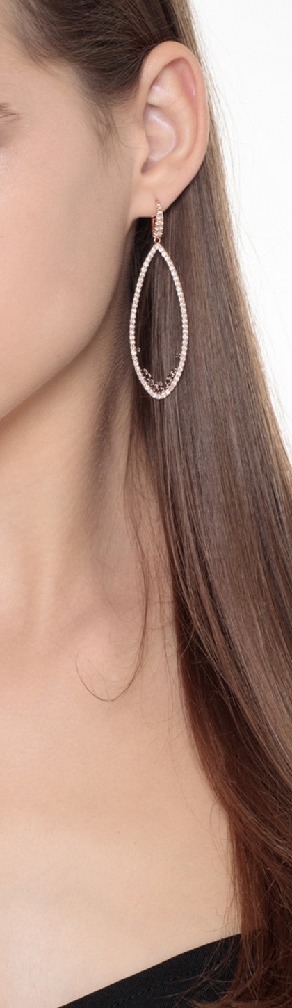 Orecchini ovali in oro rosa 18k con diamanti bianchi e neri