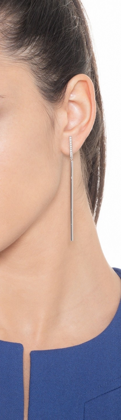 Orecchini pendenti a barretta in oro bianco 18k con diamanti