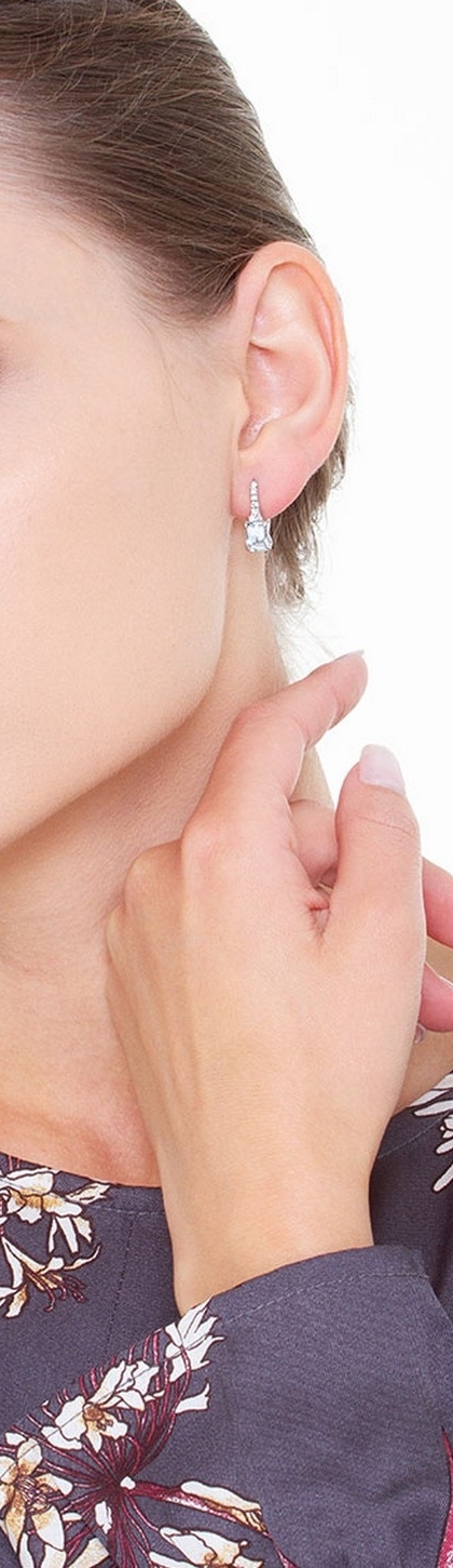 Orecchini pendenti con diamanti e acquamarina in oro bianco 18k