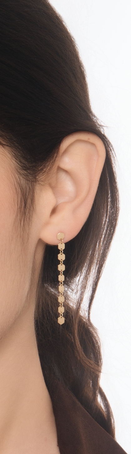 Orecchini pendenti con esagoni lucidi in oro giallo 750