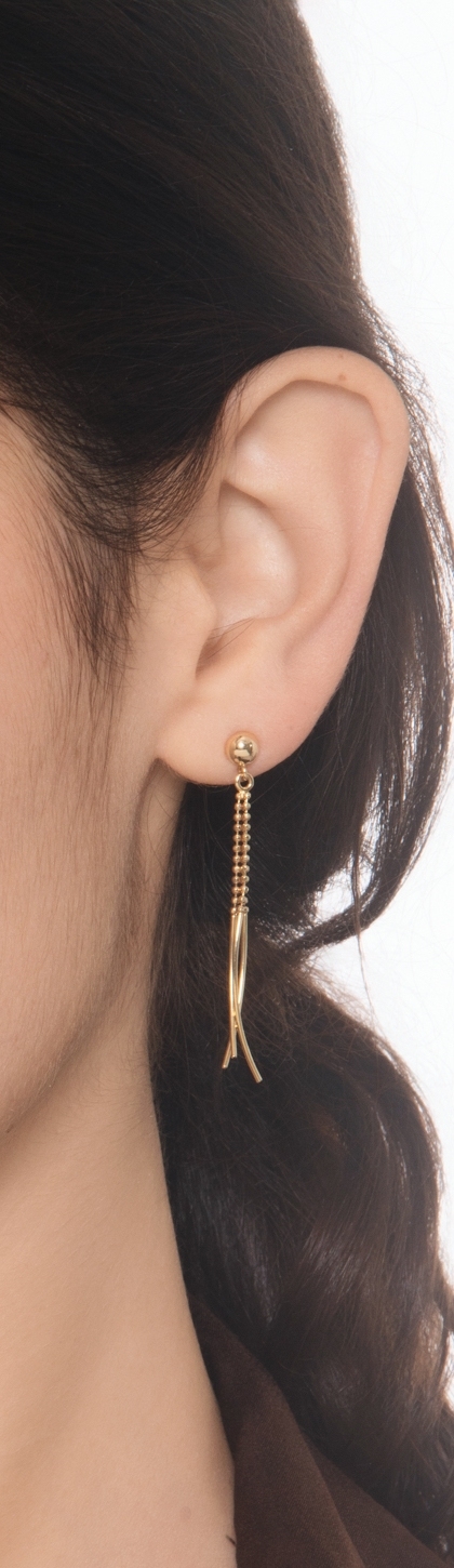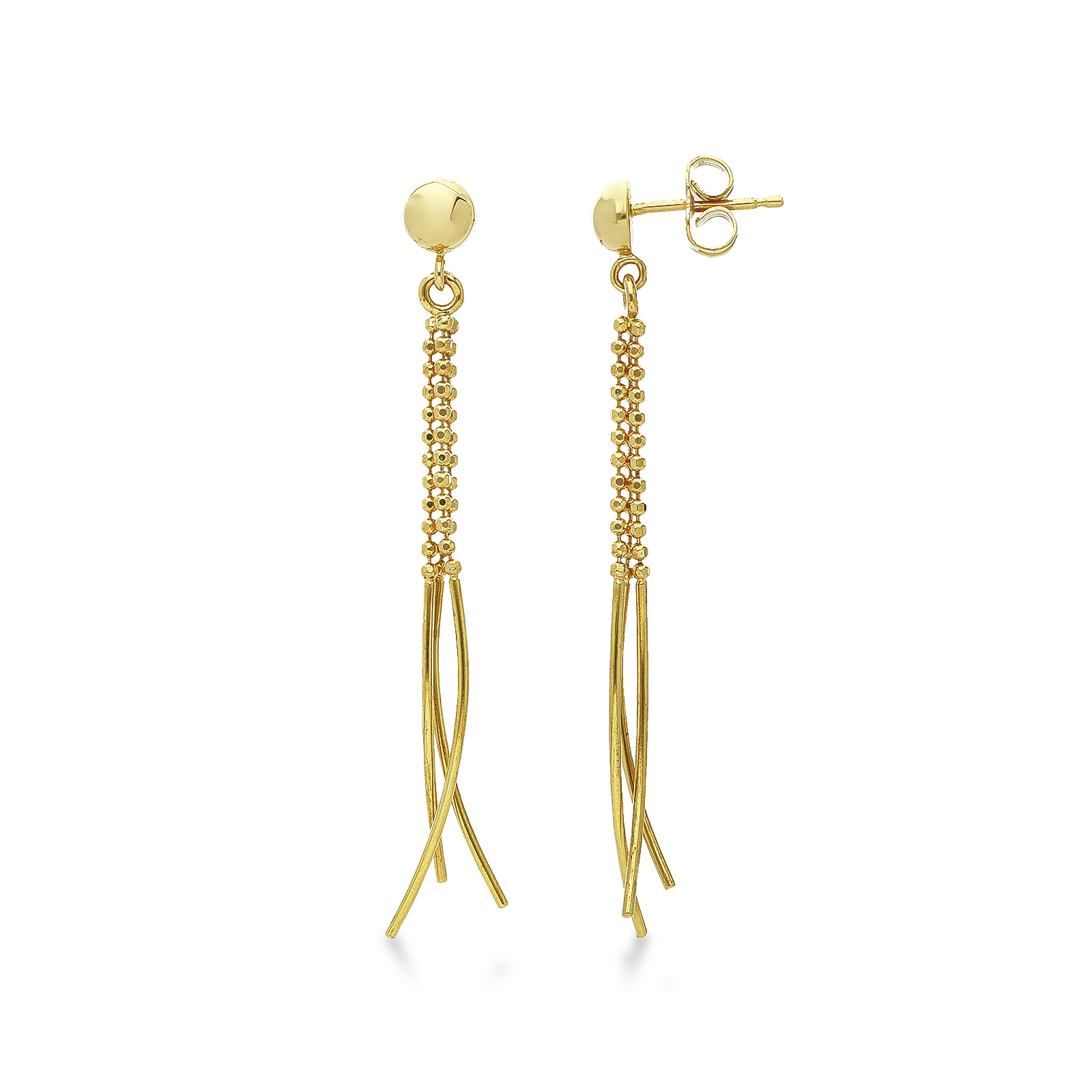 Orecchini pendenti con palline e barrette lucide in oro giallo 18k