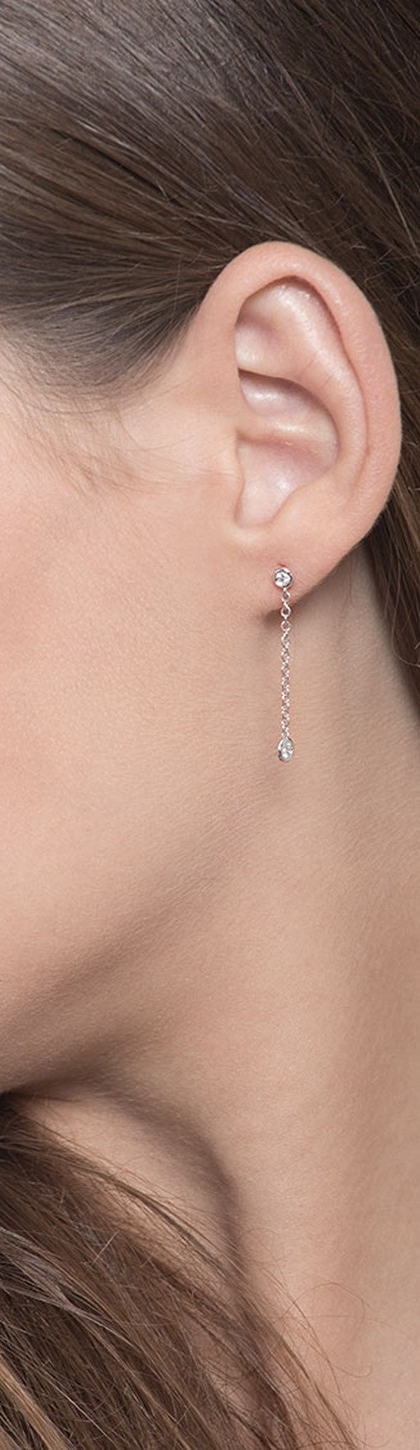 Orecchini pendenti in oro bianco 18k con diamanti, cm 2,5.