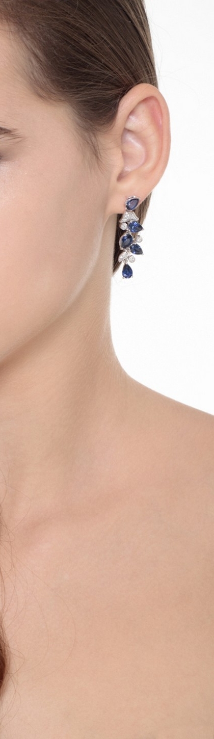 Orecchini pendenti in oro bianco 18k con diamanti e zaffiri blu