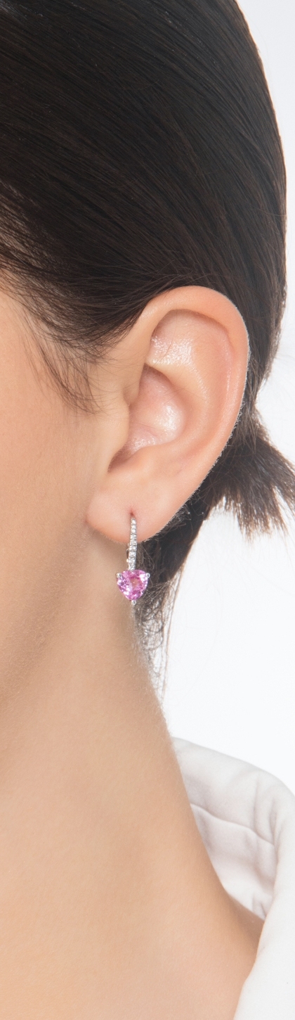 Orecchini pendenti in oro bianco 18k con zaffiro rosa e diamanti