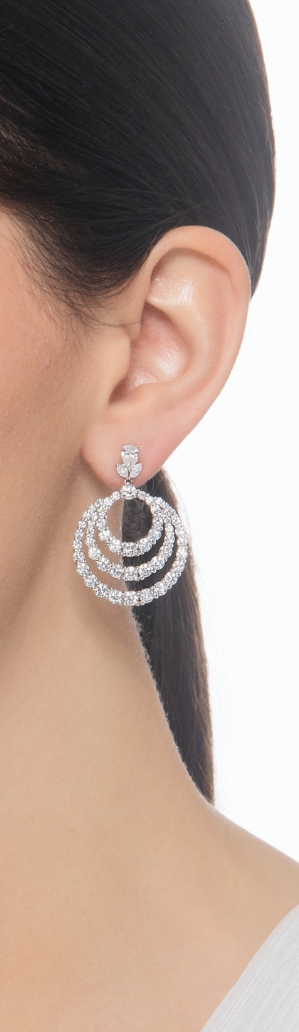 Orecchini pendenti in oro bianco 750 con cerchi in diamanti