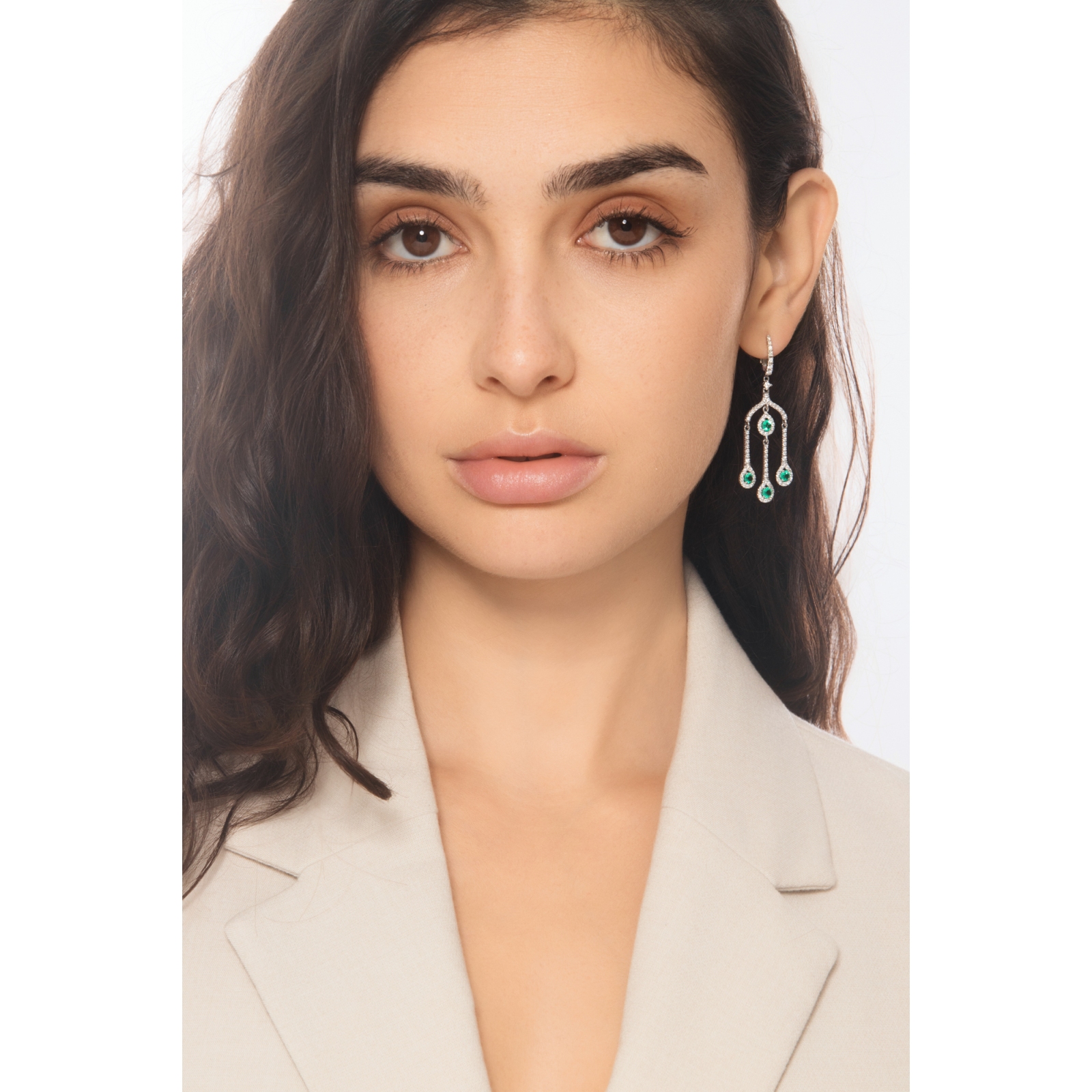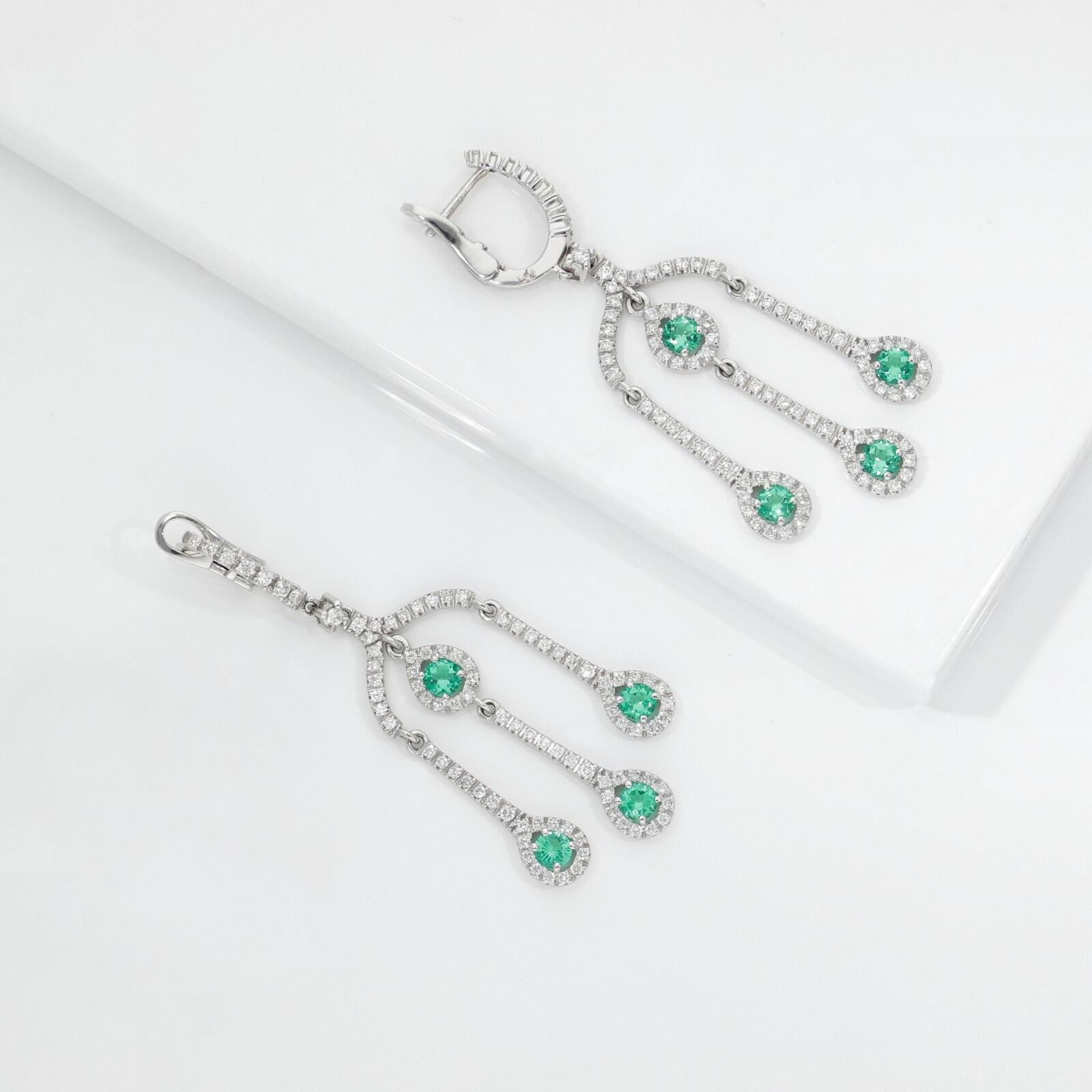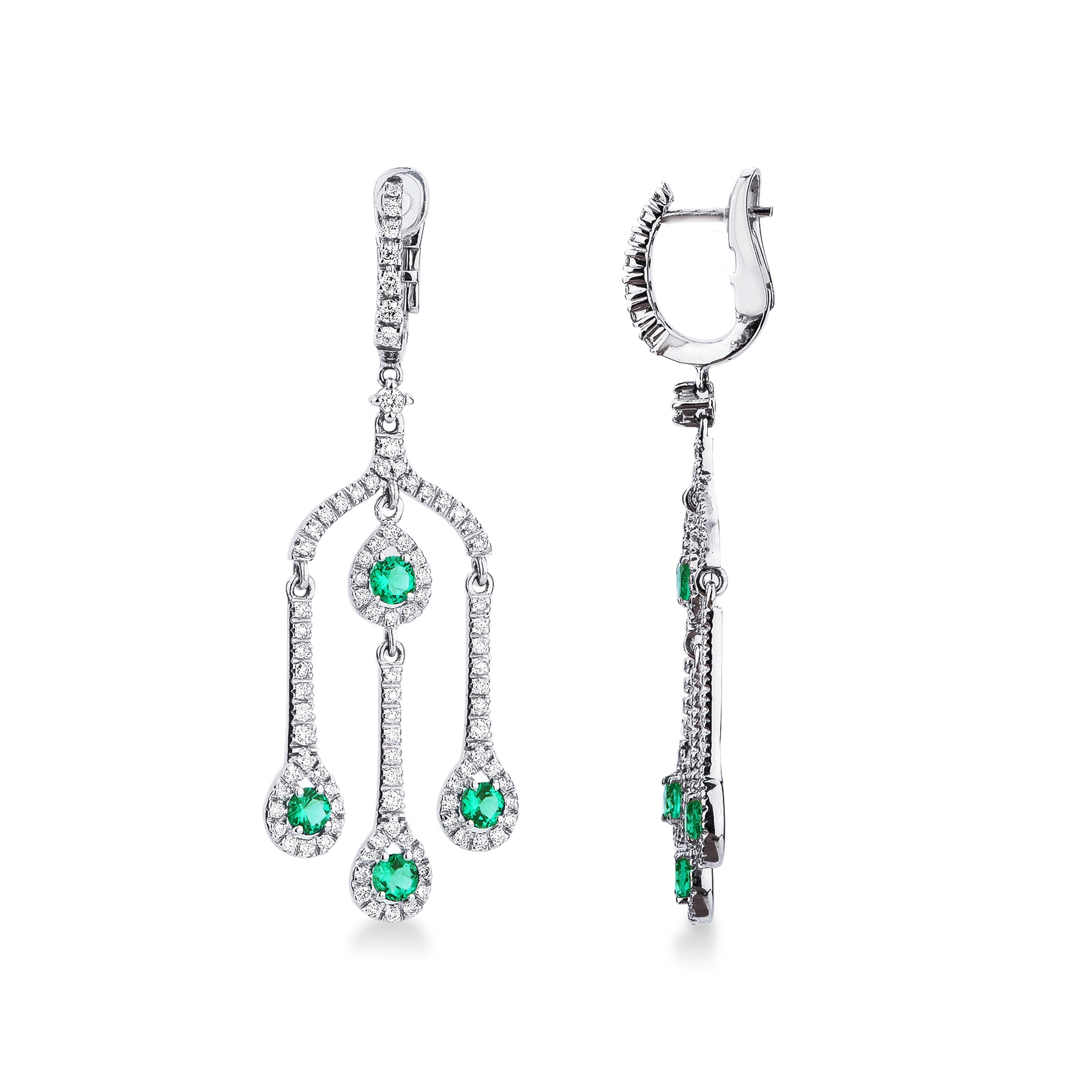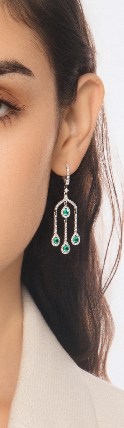 Orecchini pendenti in oro bianco 750 con smeraldi e diamanti