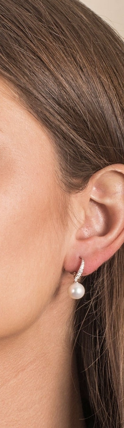 Orecchini Con Pendente in Oro bianco 18k con Perle di circa 8.70 mm e diamanti