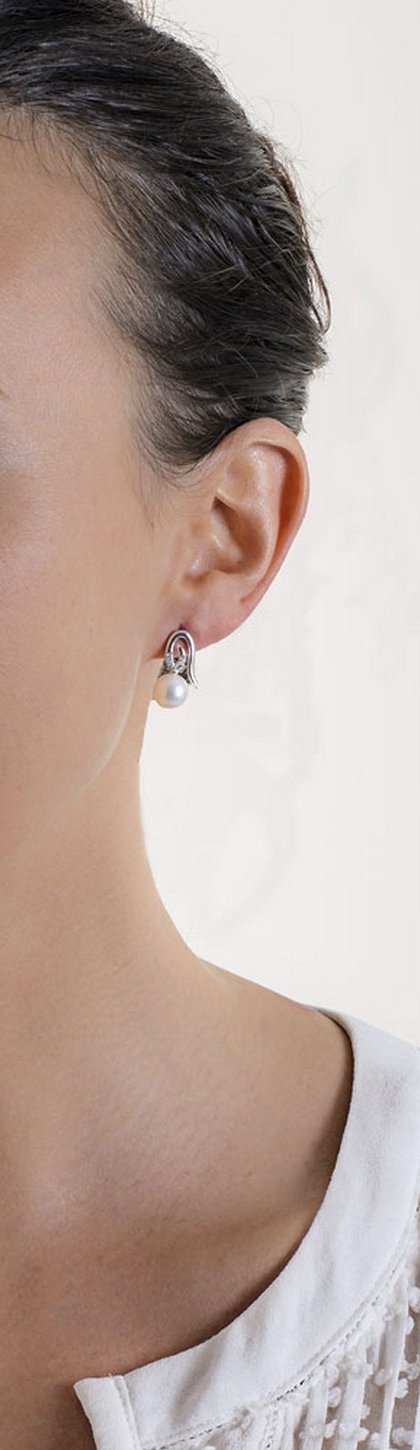 Orecchini in oro bianco 18k con perla e diamanti