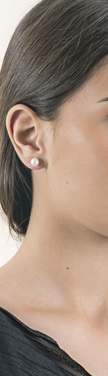 Orecchini da Donna a lobo in Oro bianco 18k con Perle di mm 7,50.