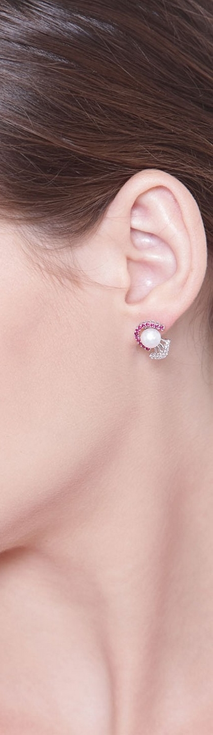 Orecchini in oro Bianco 18k con Perle, Rubini e Diamanti
