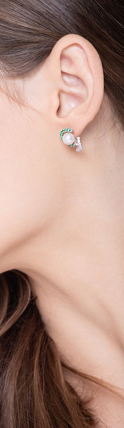 Orecchini in oro Bianco 18k con Perle, Smeraldi e Diamanti