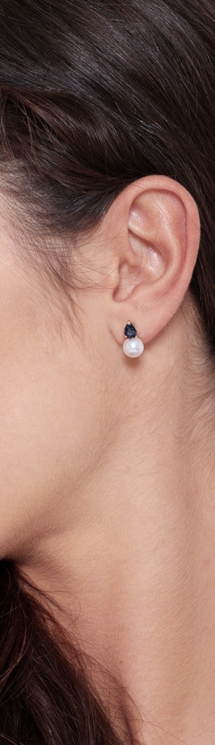 Orecchini in oro giallo 18k con zaffiri blu e perle