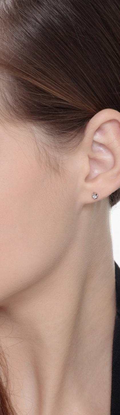 Orecchini da donna modello punto luce a quattro griffe in oro bianco 18k, con incastonati diamanti taglio brillante colore G e purezza Vs.