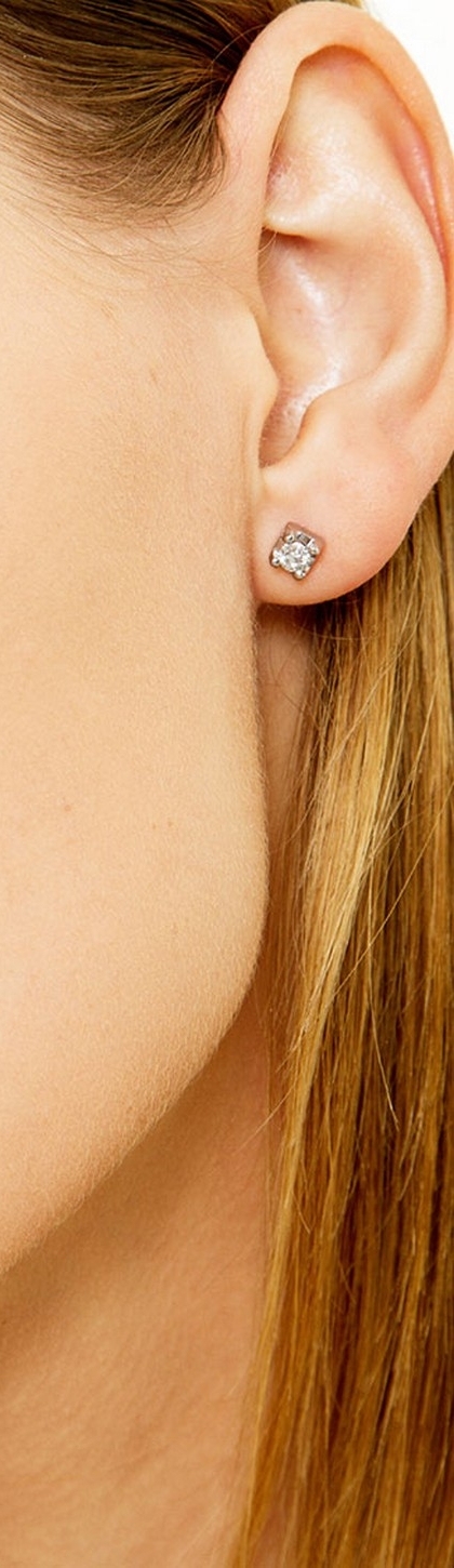 Orecchini In Oro Bianco 18k A 4 Griffe Piramide Con Diamanti