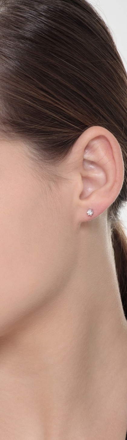 Orecchini in oro bianco 18k a 6 griffe con diamanti, ct. 0,16