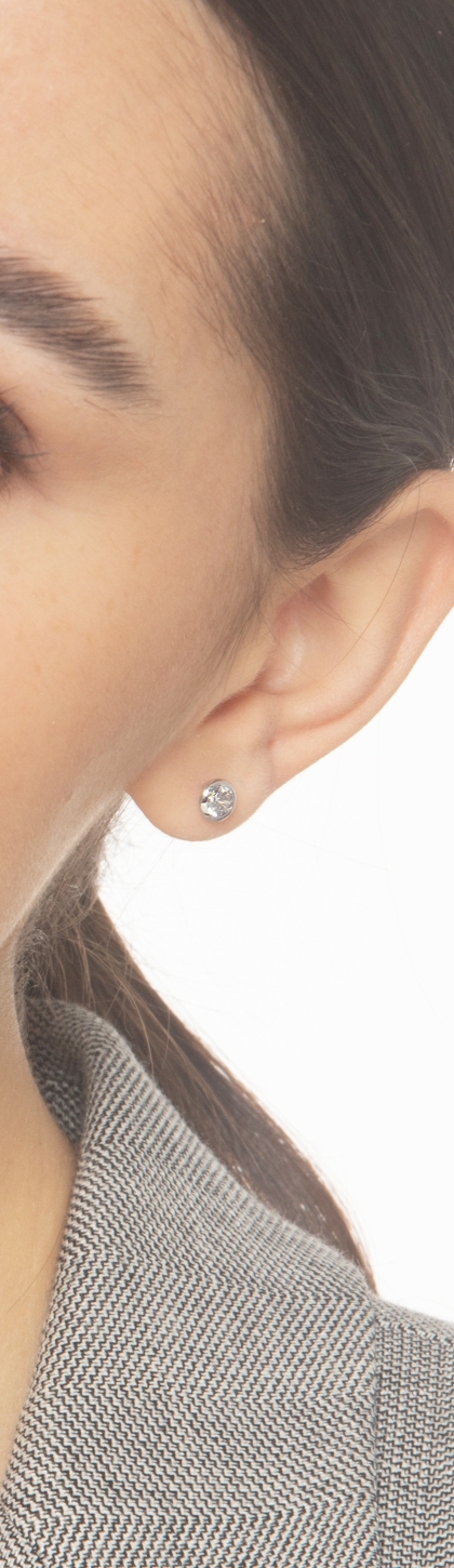 Orecchini punto luce a castone in oro bianco 18k con Zircone