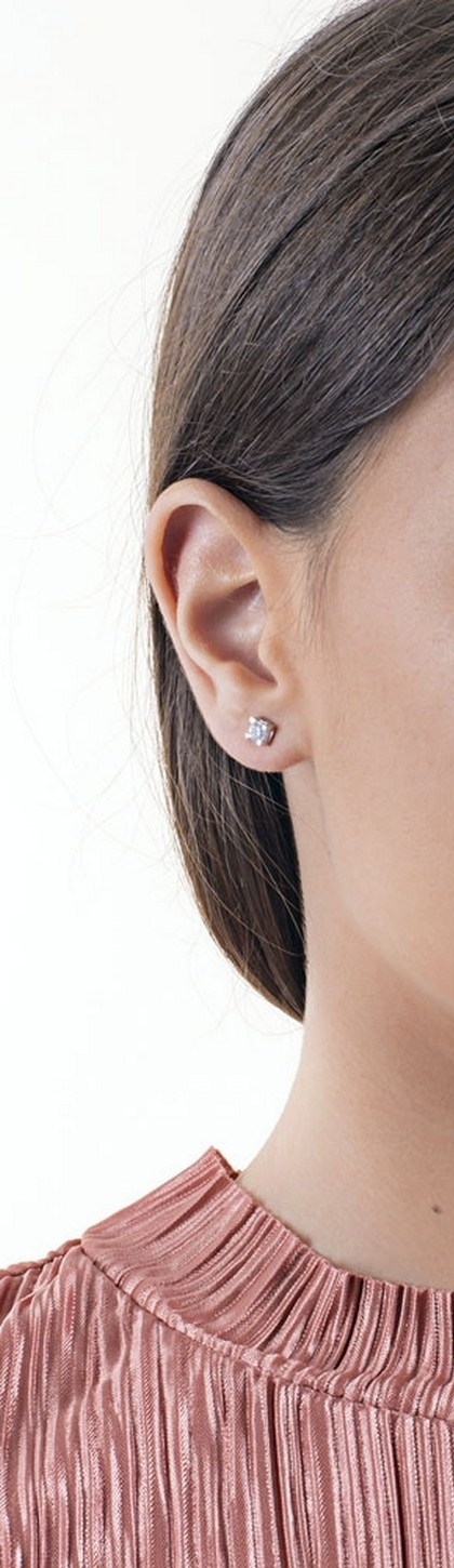 Orecchini punto luce a griffe oro bianco 18k con Zirconi.