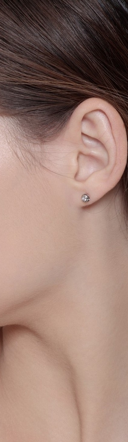 Round diamond stud earrings in white gold 18k, ct 0,08