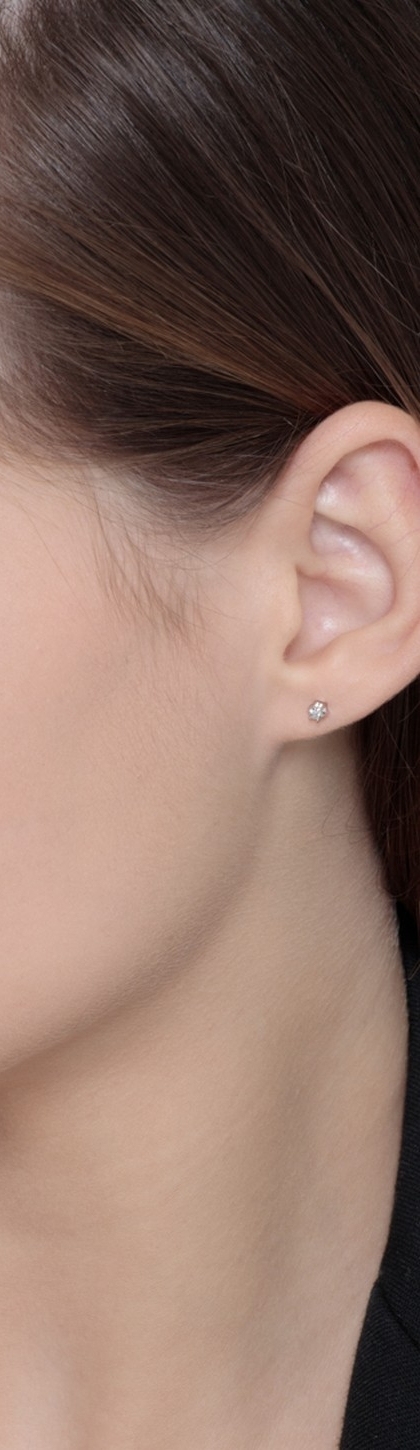 Orecchini punto luce in oro bianco 18k a 6 griffe con diamanti, ct. 0,08