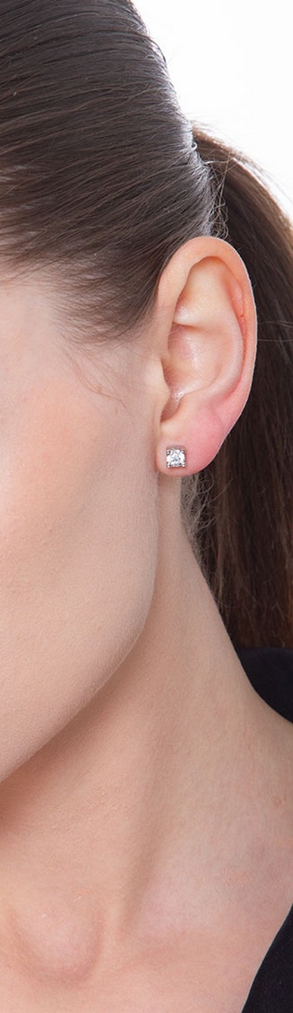 Orecchini in oro bianco 18k a castoni con diamanti taglio brillante colore G purezza Vs.