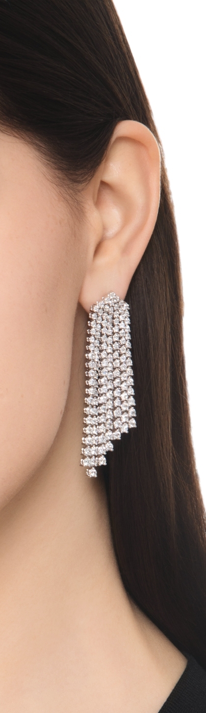 Orecchini tennis in oro bianco 18k con 7 file di diamanti