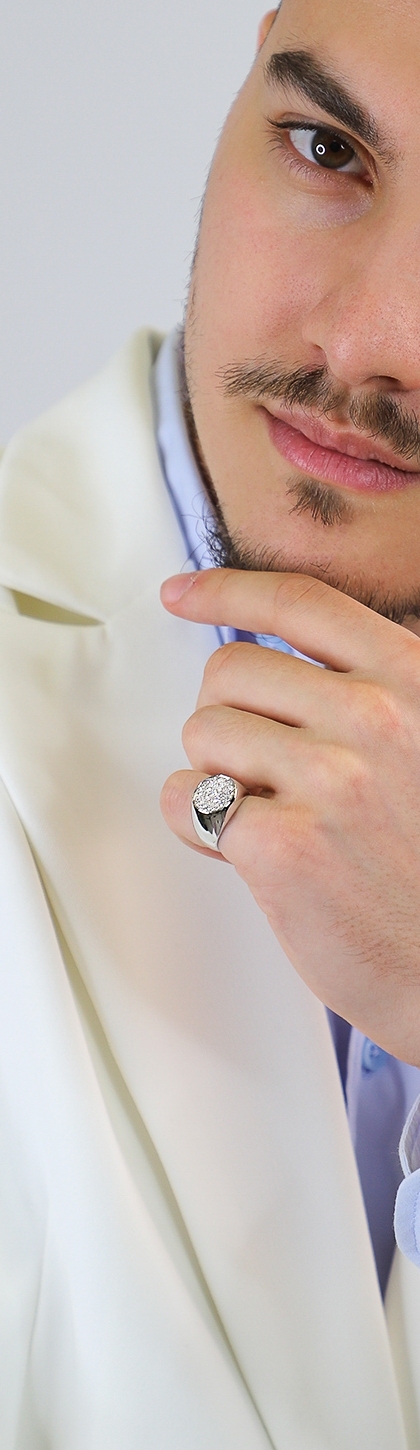 Anello Da Mignolo In Oro Bianco 18k Con Pavè In Diamanti, Uomo