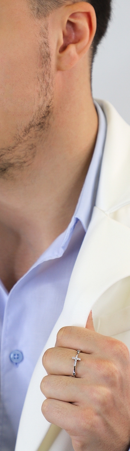Anello in Oro Bianco 18k con inserto a croce e Diamanti neri e bianchi, Uomo