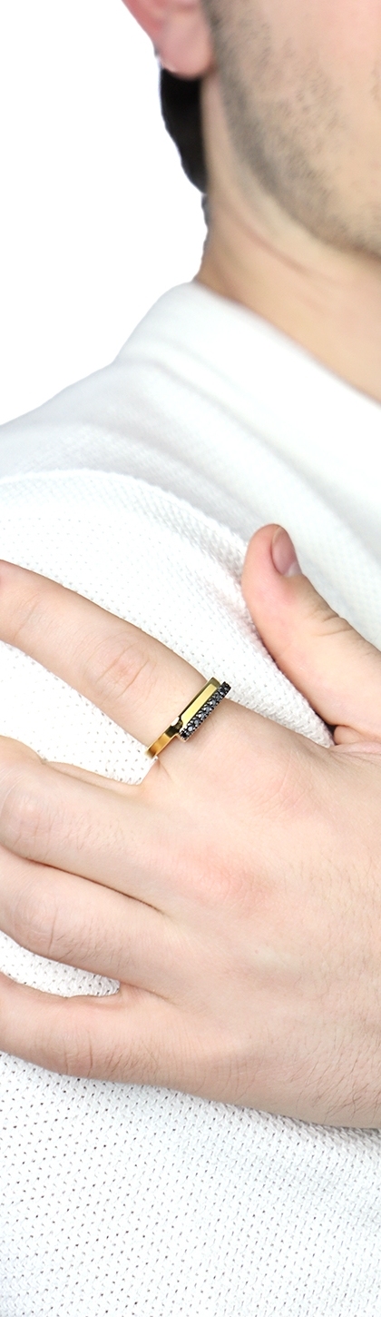 Anello in oro giallo 750 con fila in diamanti neri