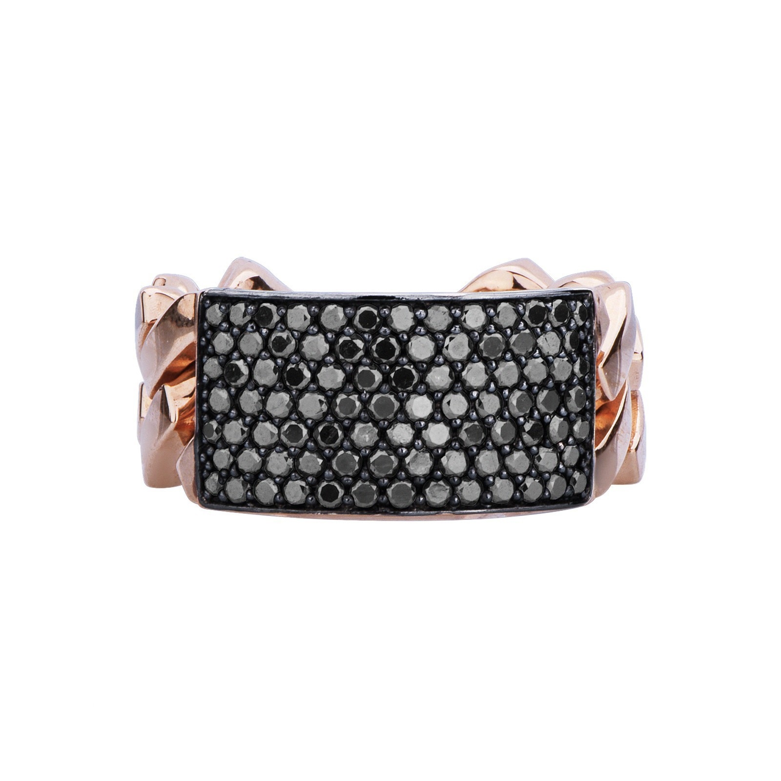 Anello maglia groumette in oro rosa 18k con piastra in diamanti neri, Uomo