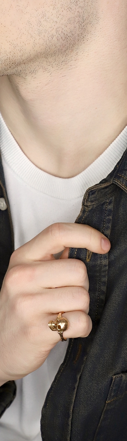 Anello teschio in oro rosa 18k con diamanti