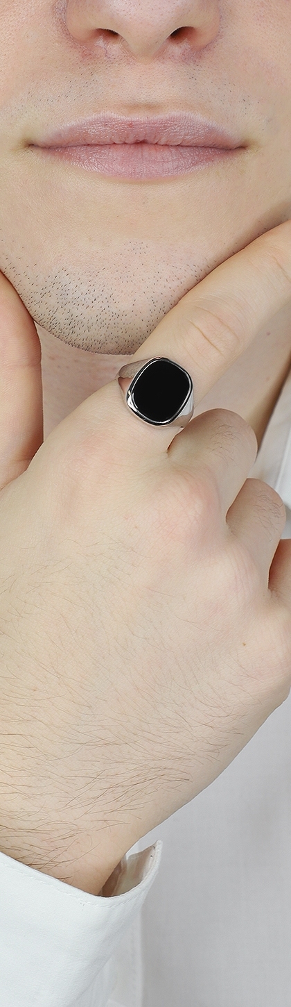 Anello uomo in oro bianco 750 con testa quadrata nera